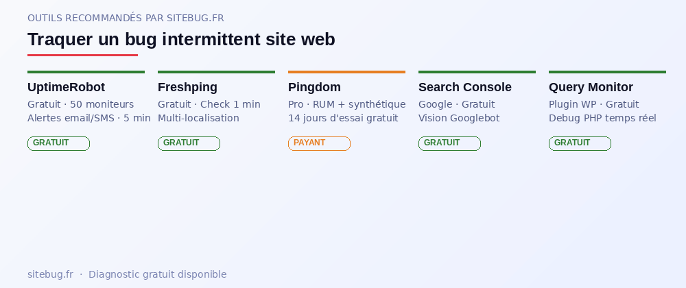 Si vous avez lu cet article en cherchant une solution à un bug qui disparaît au moment où vous tentez de le reproduire, vous avez maintenant les clés pour l'approcher différemment : documenter, monitorer, activer les logs, isoler par élimination. Si la complexité dépasse vos ressources internes ou si chaque minute d'instabilité représente un coût réel pour votre activité, c'est exactement pour ça que SiteBug.fr existe.